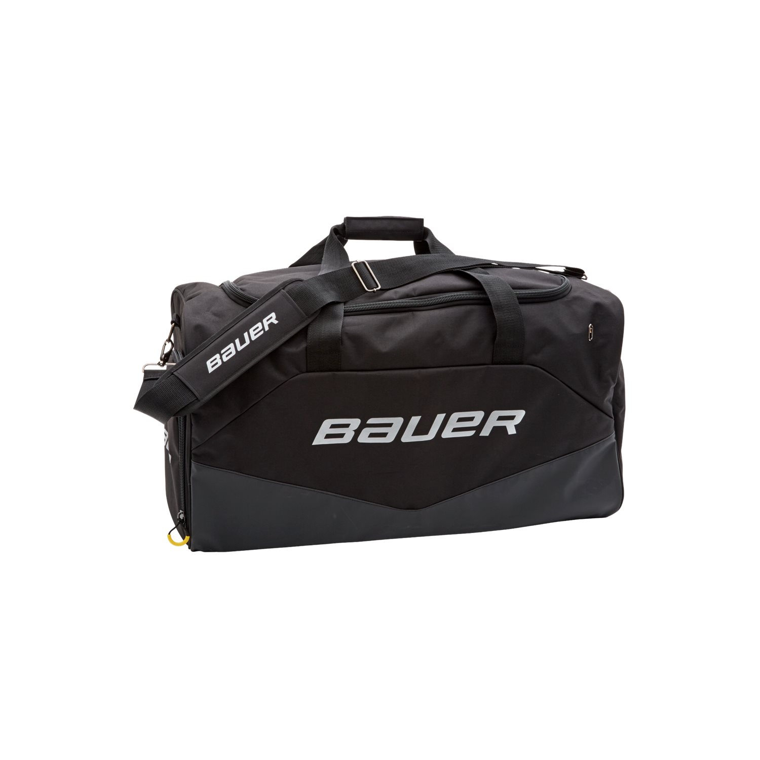 Bauer referee bag in strong and durable polyester fabric. Large side pocket and adjustable shoulder strap and two standard carry handles. U-shaped zippered opening for easy access to the bag.