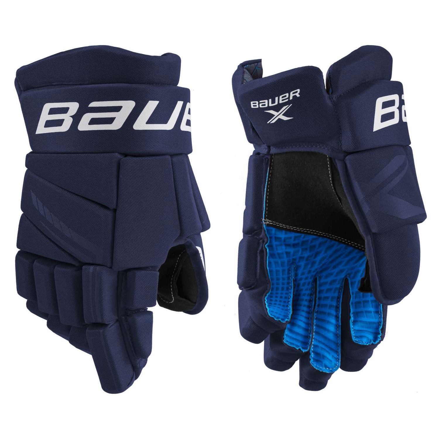 The Bauer X gloves are designed for beginners or players at a lower level, with a focus on comfort and fit. The gloves are based on the structure of the Vapor, which is more tapered and has a sleek graphic interior and a moisture-wicking interior lining. In addition, the X gloves have a moisture-wicking interior lining and a super soft interior for optimal feel. The 2-piece Flex thumb makes the hand mobile and helps the player grip the stick more properly, resulting in better control in puck handling and shooting.
