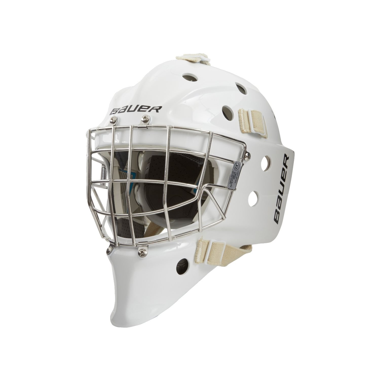The Bauer 950 goalie mask is a PRO-level mask with a carbon fibre-reinforced POWER CORE construction. The areas around the neck, forehead and sides are reinforced with PORON XRD protective material that makes the helmet durable and protective. The THERMOCORE headband and a PORON XRD reinforced flexible chin cup keep you comfortable on the ice. The AIRFLOW liner provides a lighter feel and the new grille improves visibility. SHELL: Power Core construction with carbon fiber reinforcements LINER: AirFlow liner with PORON XRD reinforcements at cheeks, neck and forehead GALLERY: Enhanced visibility on Certified Straigt bar grate BACKPLATE: Polycarbonate backplate with Poron reinforcement HEAD: Flexible head for comfort BELT: ThermoCore INCLUDES: Bauer mask bag SIZE: Small 53 - 56 cm / Medium 55 58 cm / Large / 57 - 60 cm