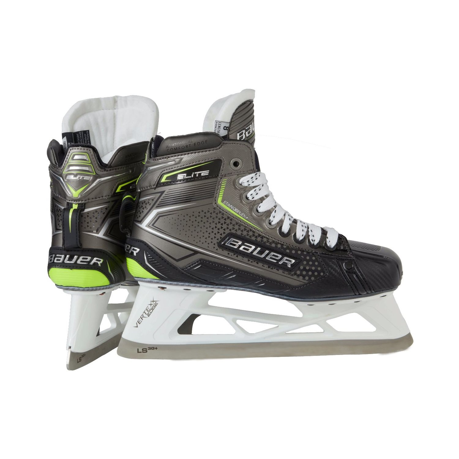 Bauer Elite Goal maalivahdin luistin on varustettu täysin uudella FIT-järjestelmällä, joka optimoi istuvuuden ja yhdistää parhaat ominaisuudet Vapor- ja Supreme-sarjoista. Luistin on rakennettu 3D-komposiittirungolla, jota kutsutaan nimellä CARBON CURV. Yhdistettynä STANCEFLEX+ -tekniikkaan, tämä mahdollistaa hyvän joustavuuden ja liikkuvuuden luistimen yläosassa, kun taas alaosa tarjoaa uskomatonta vakautta ja rakennetta jäähän. Tämä mahdollistaa liikkuvuuden samalla kun säilytetään vahva työntö- ja sivuliikkeiden vakaus pelin aikana. Bauer Elite maalivahdin luistimiin sisältyy Vertexx LS3G terät standardiprofiililla ja 27 jalan säteellä.
